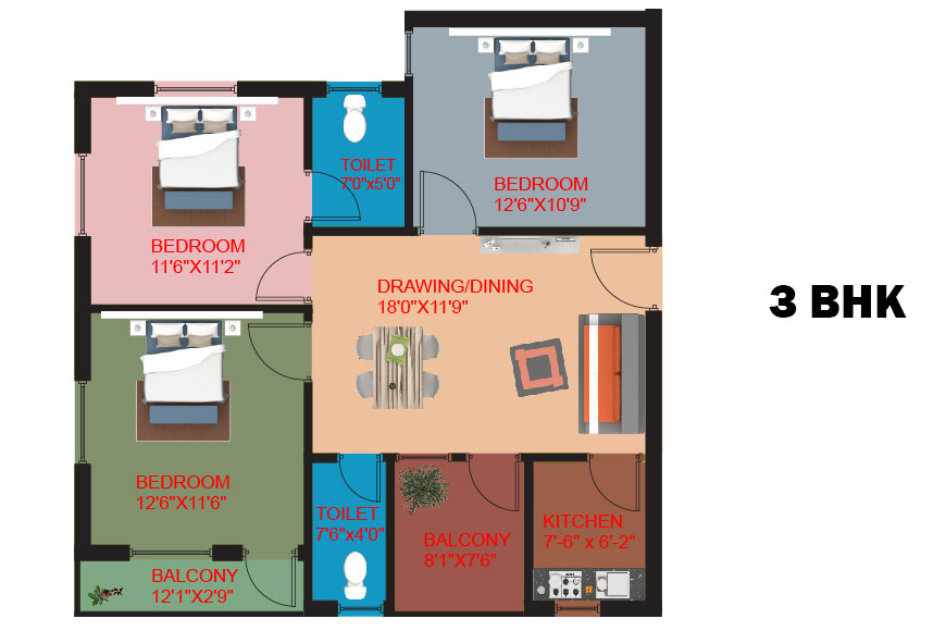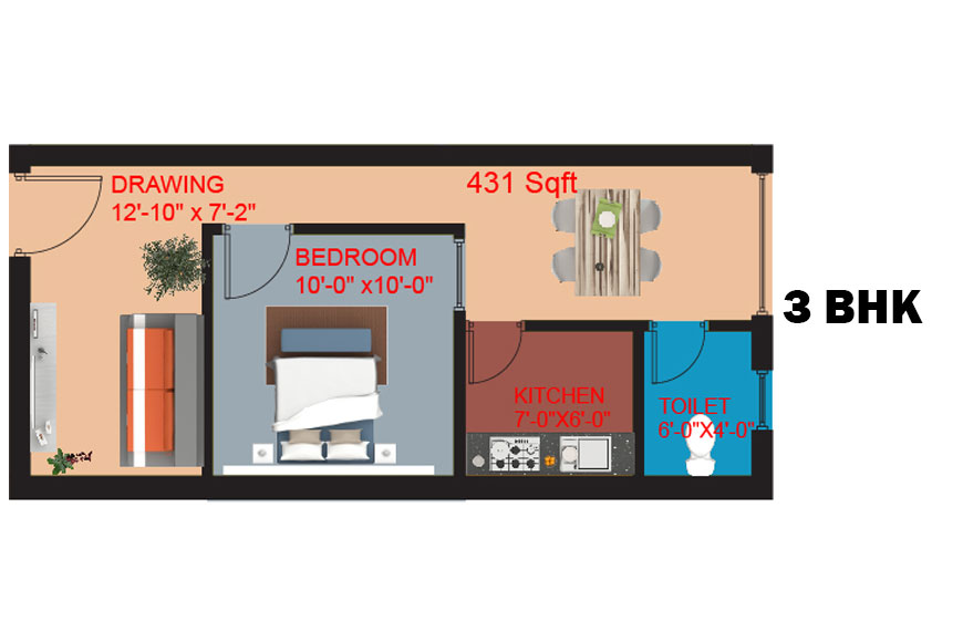 - 3. Kitchen slab will be of black granite & staircase will be of marble .